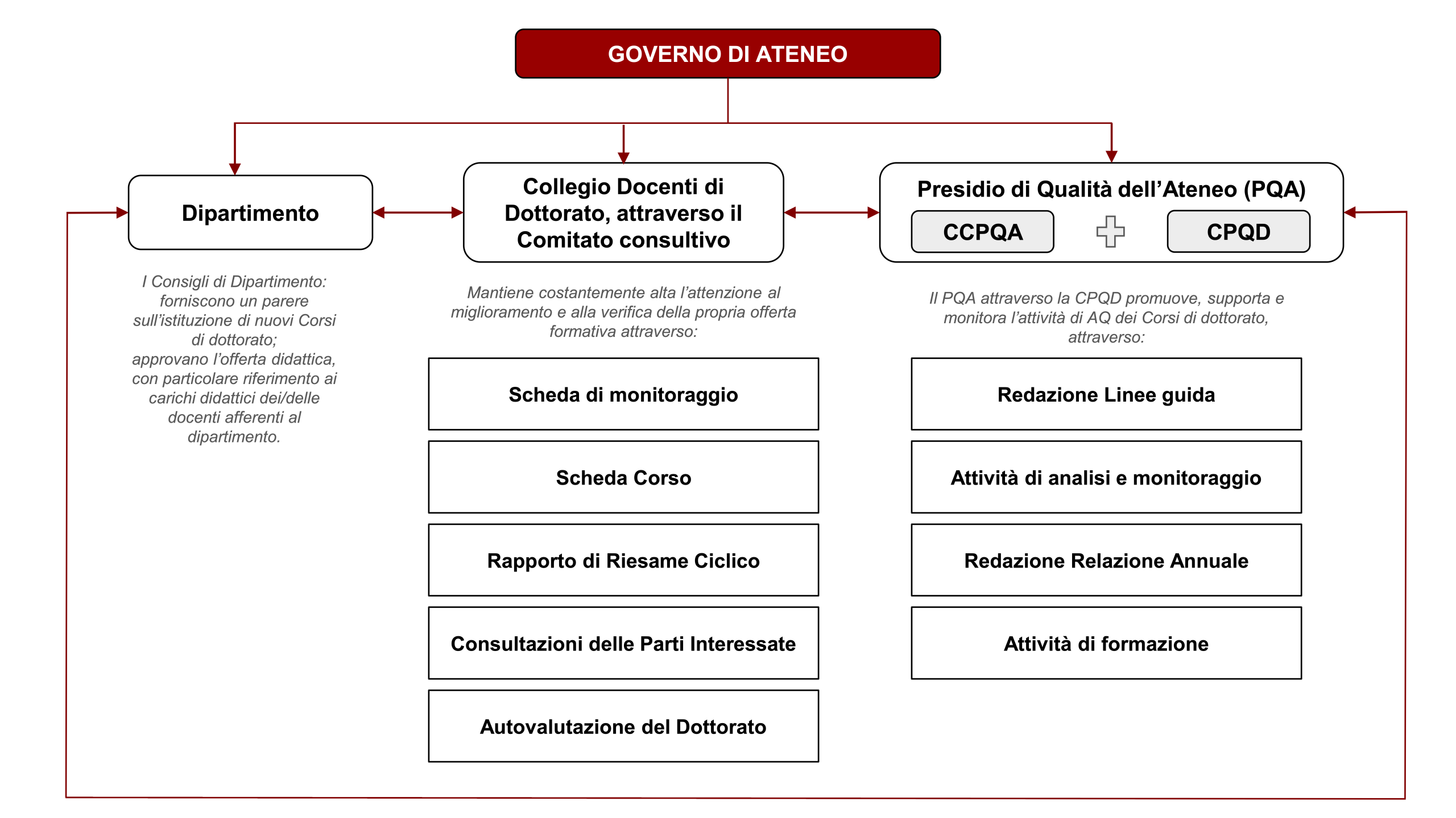 Therefore, QA in the doctoral domain ensures rigorous and internationally recognisable training paths that fully respond to the needs of advanced research and society, supporting the continuous enhancement of the learning experience and the quality of the scientific outcomes produced.